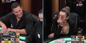 在撞上Peter的KK后,Feldman在本集的最后一手牌中试图挽回局面。在Keating的2000双倍前注生效的情况下,Feldman选择用A♠J♣从UTG位置Limo,然后Swedlow拿着Q♠Q♦从小盲位加注到17000。Peter在大盲位拿到A♣8♣,毫不畏惧地3Bet加注到47000。Britne从800的前注位置弃牌,Keating也从2000的前注位置弃牌。行动回到Feldman身上,他毫不犹豫地宣布全下。